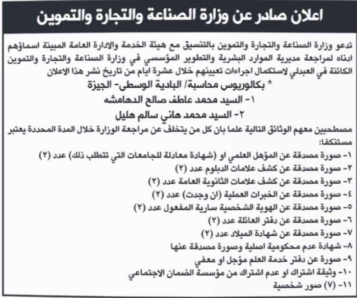 (MENAFN- Al Wakeel News) الوكيل الإخباري- دعت دوائر حكومية، اليوم الخميس، التالية أسماؤهم، لاستكمال اجراءات التعيين.