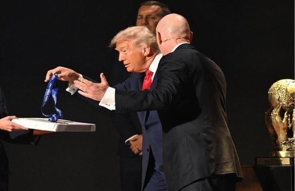 قدم الاتحاد الدولي لكرة القدم (الفيفا)، الجمعة، النسخة الأولى لجائزة فيفا للسلام؛ خلال حفل قرعة كأس العالم 2026، في مركز جون إف كينيدي للفنون المسرحية، بالعاصمة الأميركية واشنطن.