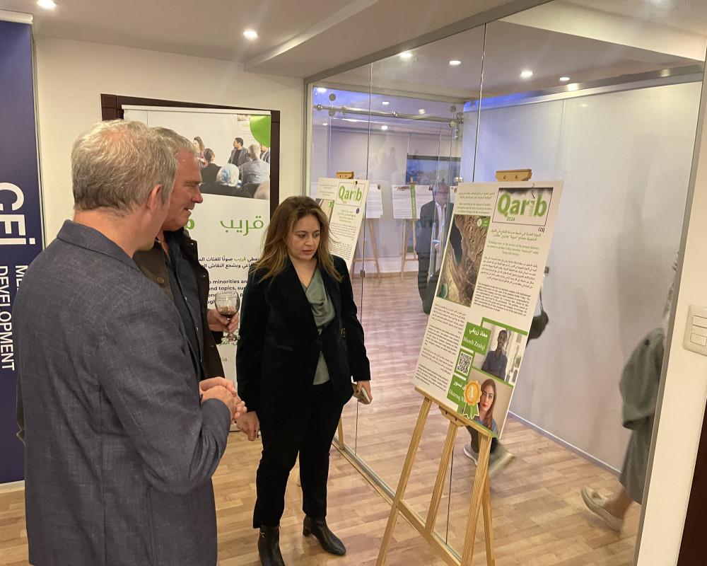 واقيم المعرض في مكتب الوكالة الفرنسية للتنمية الاعلامية بعمان بحضور مدير عام الوكالة في العالم ايمانويلا تولان والمدير الاقليمي للوكالة الفرنسية للتنمية الدولية AFD يافيس جيسكورو ومدير برنامج قريب هنريك اهرناس ورئيسة تحرير برنامج قريب ندا عبد السلام والعديد من ممثلي وسائل الاعلام العربية وعدد من المانحين للمؤسسات الاعلامية وطاقم قريب في الاردن.