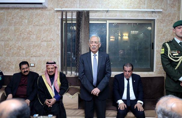 مندوبًا عن جلالة الملك عبدالله الثاني وسمو الأمير الحسين بن عبدالله الثاني، ولي العهد، قدّم رئيس الديوان الملكي الهاشمي يوسف حسن العيسوي، اليوم الأحد، واجب العزاء إلى عشائر النابلسي والجوارنة والزغول، ناقلًا إليهم تعازي ومواساة جلالة الملك وسمو ولي العهد.