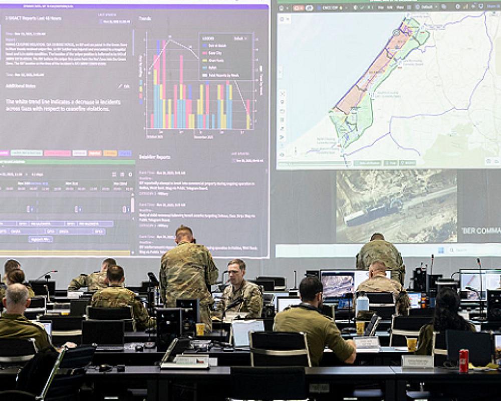 وأُنشئ مركز مركز التنسيق المدني-العسكري في أكتوبر/تشرين الأول الفائت لمراقبة وقف إطلاق النار، وتنسيق المساعدات، ووضع خطط لمستقبل غزة في إطار الخطة المكوّنة من 20 بنداً التي وضعها الرئيس الأميركي دونالد ترامب لإنهاء الحرب. وتُعرض نسخ عملاقة من تلك الوثيقة في أنحاء المبنى. وكان الجنود المتمركزون هناك مكلّفين بدعم زيادة الإمدادات الحيوية إلى غزة، وهو جزء من الاتفاق. وعندما بدأ المركز عمله، أفادت وسائل إعلام أميركية وإسرائيلية بأن إسرائيل سلّمت للجيش الأميركي جزءاً من سلطة اتخاذ القرار بشأن ما يدخل إلى القطاع.