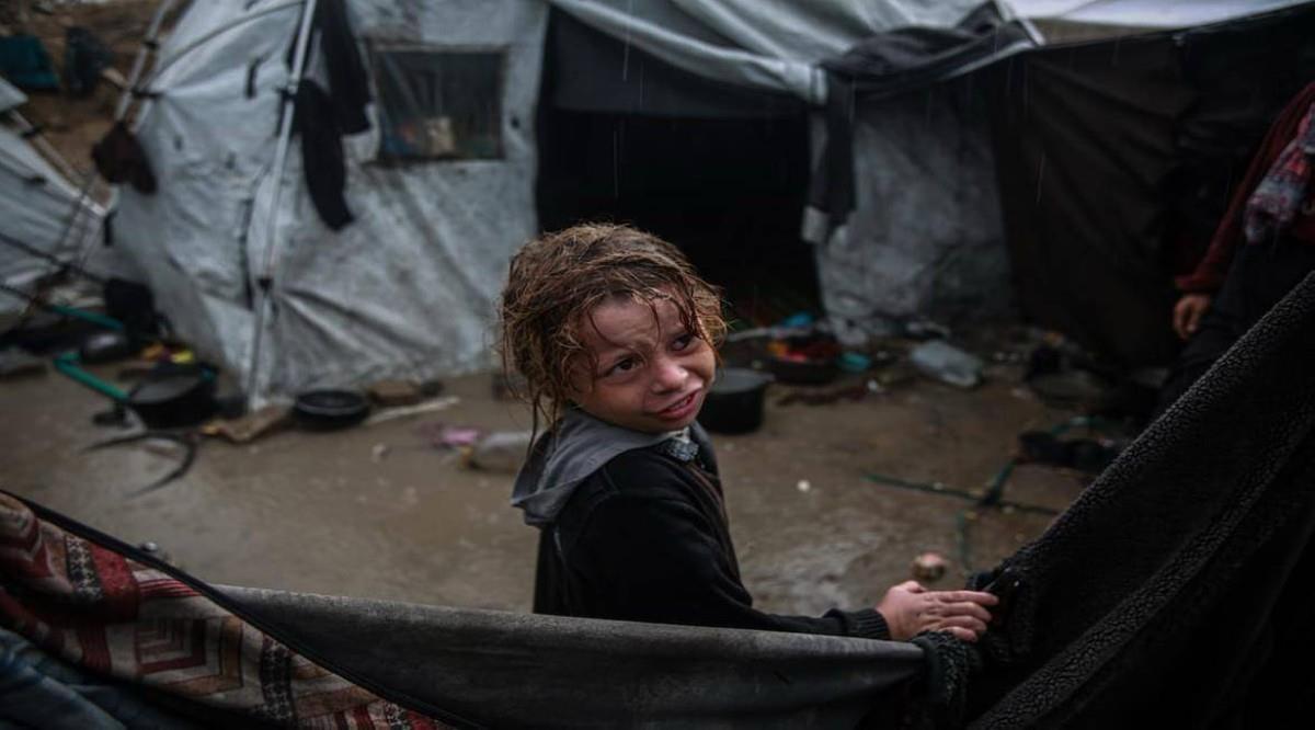 الأمطار هطلت بغزارة على قطاع غزة، وبدت السماء وكأنها تصبّ الماء على رؤوس النازحين، الذين أصبحوا بلا مأوى، بعد أن دمرت الحرب منازلهم، وشردتهم عن قراهم وأماكن سكناهم.