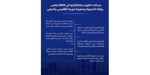 عكست الشراكات والاتفاقيات التي عقدتها دولة الكويت العام 2025 مع دول ومنظمات عديدة حول العالم ومؤسسات عالمية رائدة في مختلف المجالات رؤية البلاد الطموحة لتعزيز محورية دورها على الساحتين الإقليمية والدولية وتحقيق التنمية المستدامة.