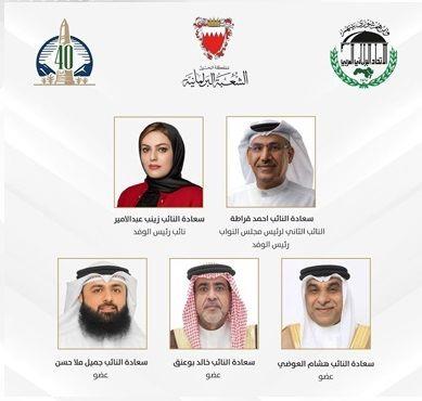 ويضم الوفد: النائب زينب عبدالأمير خليل "نائب رئيس الوفد"، والنائب هشام عبدالعزيز العوضي، والنائب خالد صالح بوعنق، والنائب جميل ملا حسن.