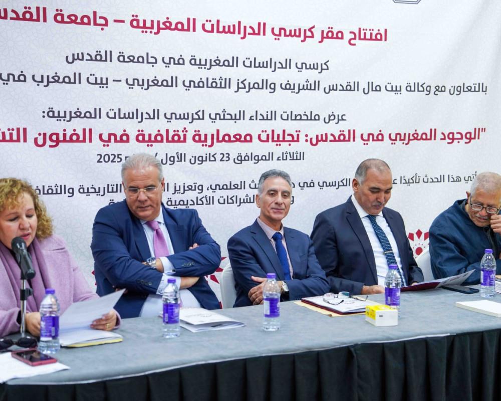 وجسد هذا التدشين انتقال العمل في الكرسي من مرحلة التأسيس إلى مرحلة التمكين المؤسسي والمعرفي، حيث تم عرض ملخصات الأساتذة والطلاب المشاركين في النداء البحثي الأول لكرسي الدراسات المغربية، تناولت محاور تاريخية وثقافية ومعمارية وفنية مرتبطة بالوجود المغربي في القدس وتجلياته الحضارية، وذلك ضمن نقاش أكاديمي متخصص، أطره أعضاء الهيئة العلمية للكرسي.