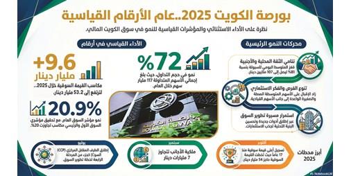 في ختام عام استثنائي بكل المقاييس، تطوي بورصة الكويت صفحة 2025 وقد رسخت موقعها كأحد أبرز أسواق المال أداء في المنطقة، بعد أن سجلت مكاسب سوقية تجاوزت 9.6 مليارات دينار، ونجحت في استعادة مستويات تاريخية غابت عن شاشات التداول لأكثر من 17 عاما، أرقام العام المنتهي لا تعكس فقط صعودا سعريا مؤقتا، بل تؤشر إلى تحول هيكلي في عمق السوق وسلوك المستثمرين، مع قفزة لافتة في معدلات السيولة اليومية، وارتفاع إجمالي أحجام التداول إلى 117 مليار سهم، بنمو بلغ 72% مقارنة بالعام السابق، في دلالة واضحة على اتساع قاعدة المشاركة وتنوع الرؤى الاستثمارية.