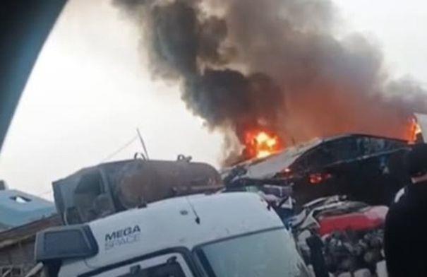 الدفاع المدني يتعامل مع حريق هنجر قطع شاحنات في أبو علندا