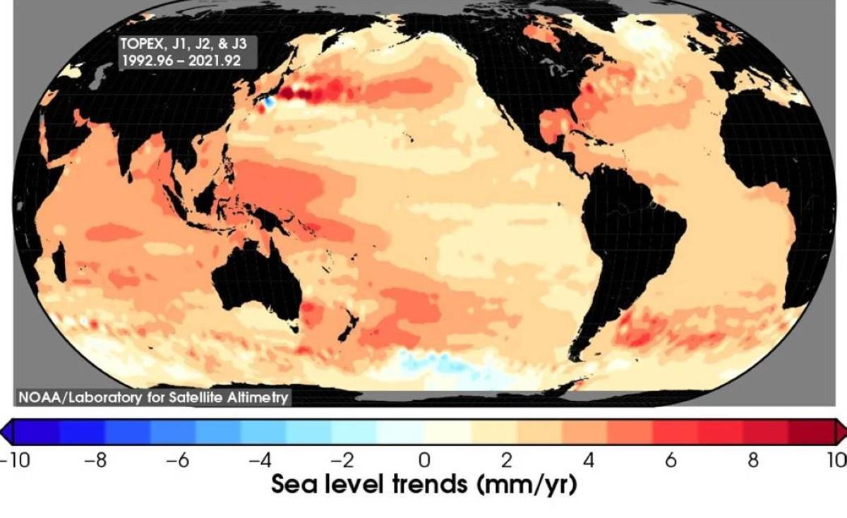 رصدت وكالة الفضاء الأميركية "ناسا" ارتفاع مستوى سطح البحر في المحيط الهادئ عن مستوى سطح البحر في المحيط الأطلسي بحوالي 20 سنتيمتراً (8 بوصات).