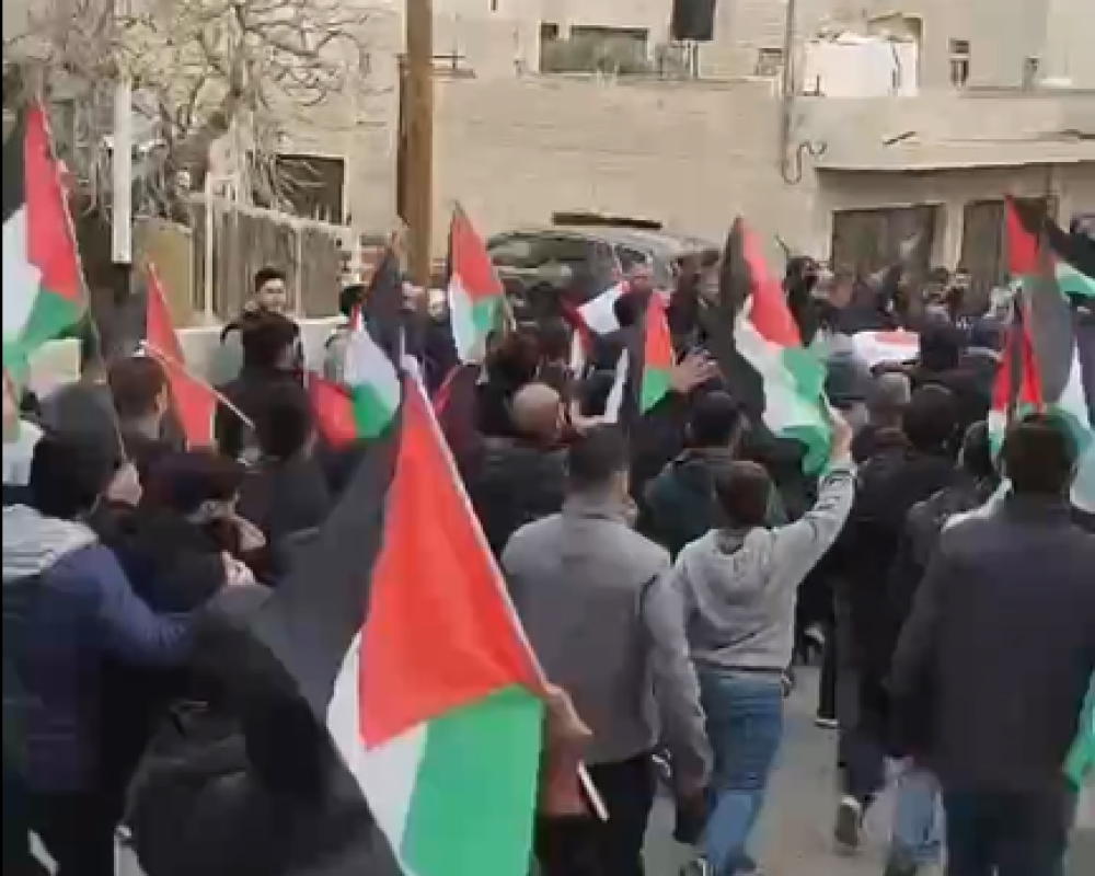 وانطلق موكب التشييع من مجمع فلسطين الطبي، وحمل المشيعون جثمان الشهيد على الأكتاف وجابوا شوارع القرية منددين بجريمة المستعمرين.