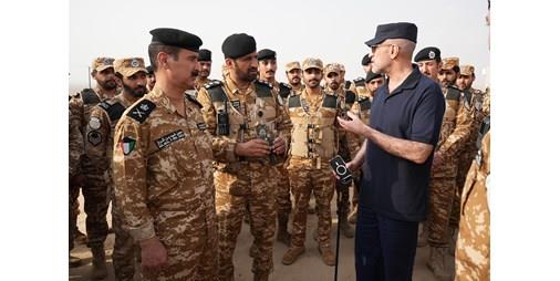 وخلال جولاته الميدانية على مختلف المواقع، نقل اليوسف تحيات وتهاني حضرة صاحب السمو أمير البلاد المفدى القائد الأعلى للقوات المسلحة الشيخ مشعل الأحمد الجابر الصباح -حفظه الله ورعاه- وسمو ولي عهده الأمين الشيخ صباح خالد الحمد الصباح -حفظه الله- إلى أبنائهم منتسبي أمن الحدود والمنافذ وخفر السواحل بمناسبة عيد الفطر السعيد.