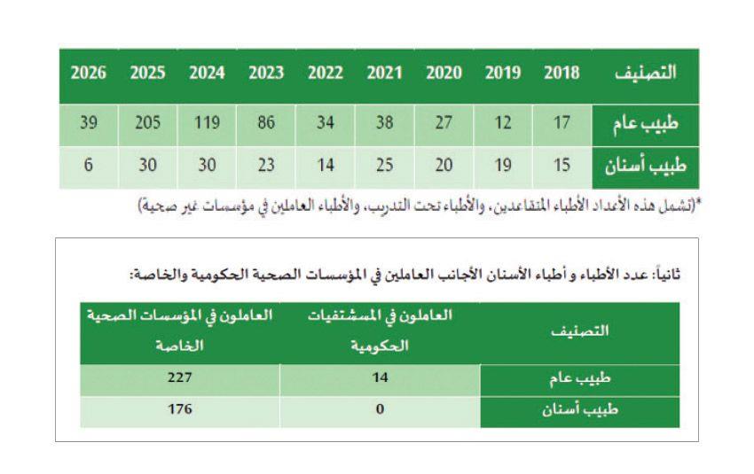 كما ذكرت الوزارة ان عدد الأطباء الأجانب العاملين في المؤسسات الصحية الحكومية والخاصة يبلغ 14 طبيبا عاما يعملون في المستشفيات الحكومية، و227 طبيبا عاما يعملون في المؤسسات الصحية الخاصة.