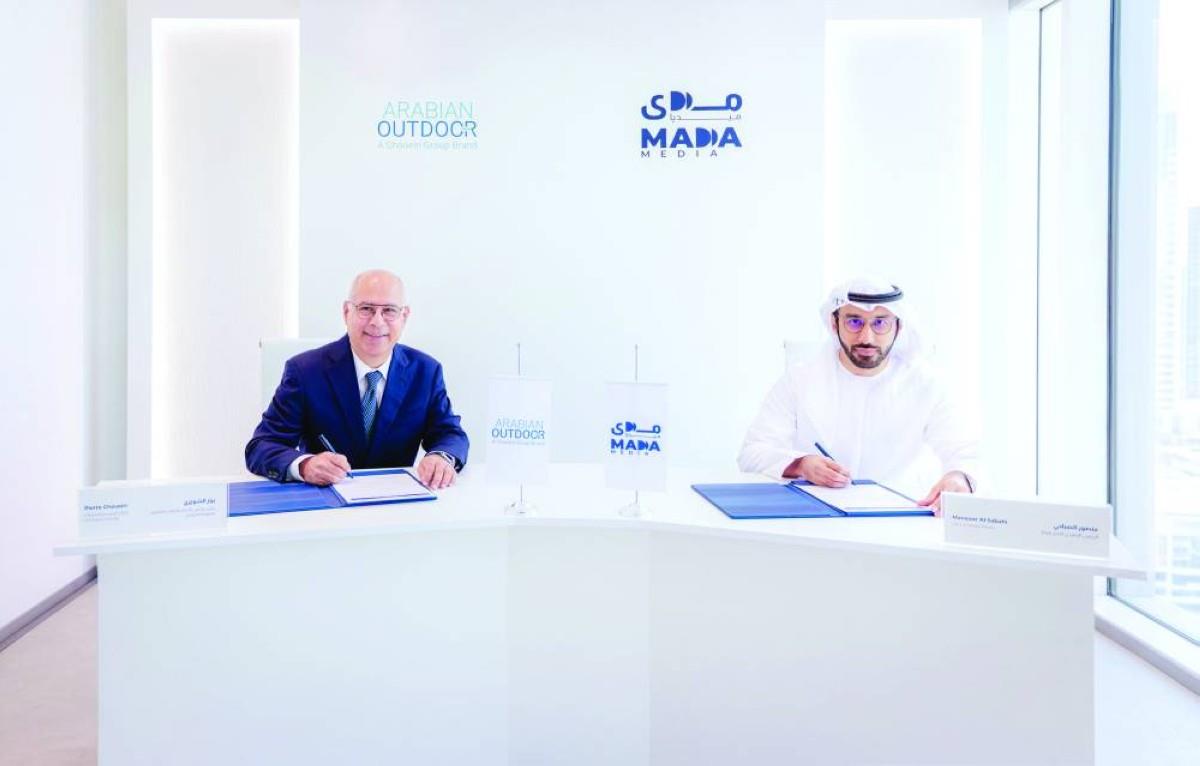 وأعلنت ((مدى ميديا)) عن ترسية عطاء على شركة آرابيان آوتدور يتعلق بحقوق التشغيل والاستثمار لمجموعة من الأصول الإعلانية الخارجية، ضمن إطار التنظيم المتبع في دبي. حضر توقيع الاتفاقية: منصور الصباحي الرئيس التنفيذي للجهة المنظمة، وبيار الشويري رئيس مجلس الإدارة والرئيس التنفيذي لمجموعة الشويري.