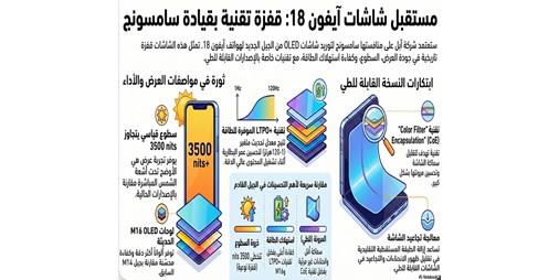 وفيما يتعلق بالإصدارات القابلة للطي من «آيفون 18»، ترجح التقارير أن تعتمد «سامسونج» تقنية «CoE» أو «Color Filter on Encapsulation»، وهي تقنية تقلل سماكة الشاشة وتحسن مرونتها عبر إزالة الطبقة المستقطبة التقليدية، ما يساعد على تقليل ظهور التجاعيد والانحناءات في الشاشات القابلة للطي.